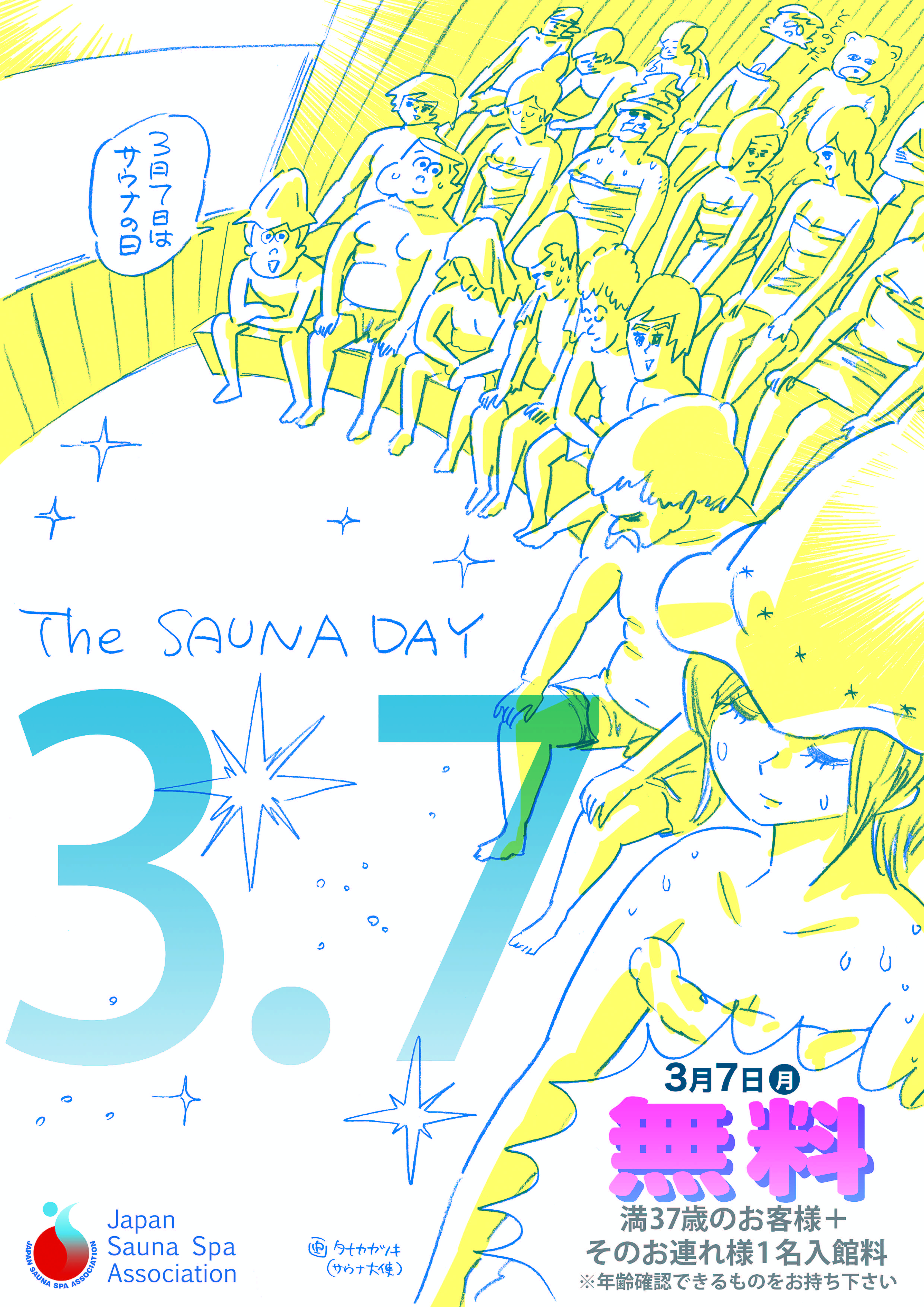 3月7日(月)はサウナの日、当日37歳の方とそのお連れ様も1名、サウナ入泉料が無料(2,100円⇒0円)になります。