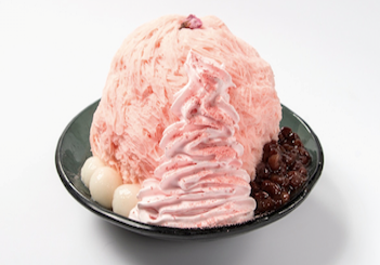 オープンを記念して、事前にお客様に投票して頂いていた、大阪で先行販売する新フレーバーが「桜ミルクかき氷」に決定いたしました。ほのかな桜葉の香りのする桜ミルクかき氷に、あずき、白玉、サクラ風味のエスプーマミルクをトッピングし、塩漬けした桜の花びらをのせた春らしいかき氷です。