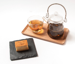 台湾のお土産の定番、パイナップルケーキをマンゴー味にアレンジした、アイスモンスター東京限定のマンゴーケーキとジャスミン茶やライチ茶などの中国茶と一緒に楽しみいただけるセットメニュー。
