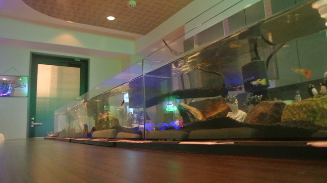 店内のカウンターに約240cmのロング水槽を設置しています。かわいい熱帯魚たちが気持ちよさそうに泳いでいる姿に癒されてみませんか?