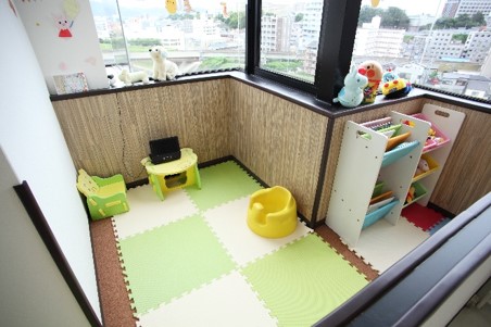 開院当初から「子どもと家族が一緒に来院できる整骨院」をコンセプトに院づくりをおこなっています。授乳室、キッズスペースなどを確保し、施術中は育児経験があるスタッフが子どもを預かります。