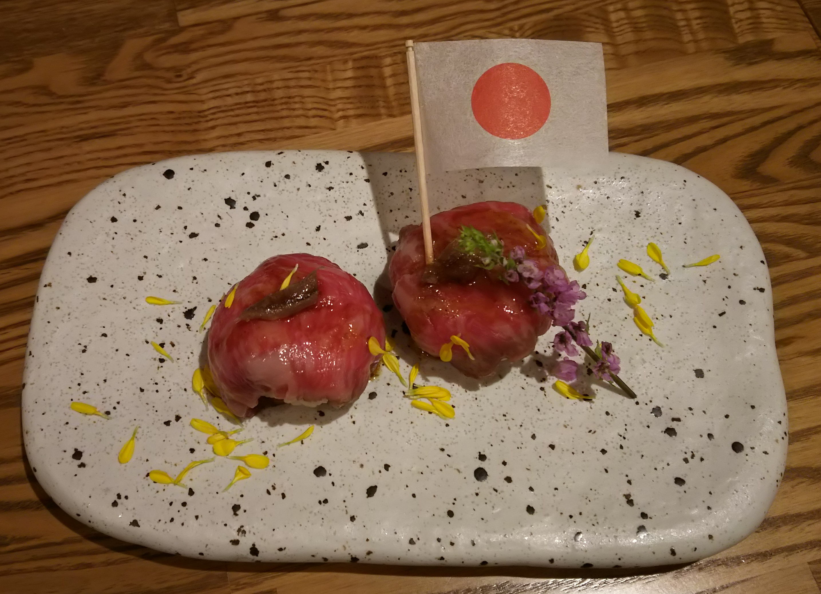 当店といたしましては、黒毛和牛をモチーフとして各国料理を完成させて1つの皿に盛ることで、各国の親善・協調・親和でお客様に楽しんでいただけたらと思っております。