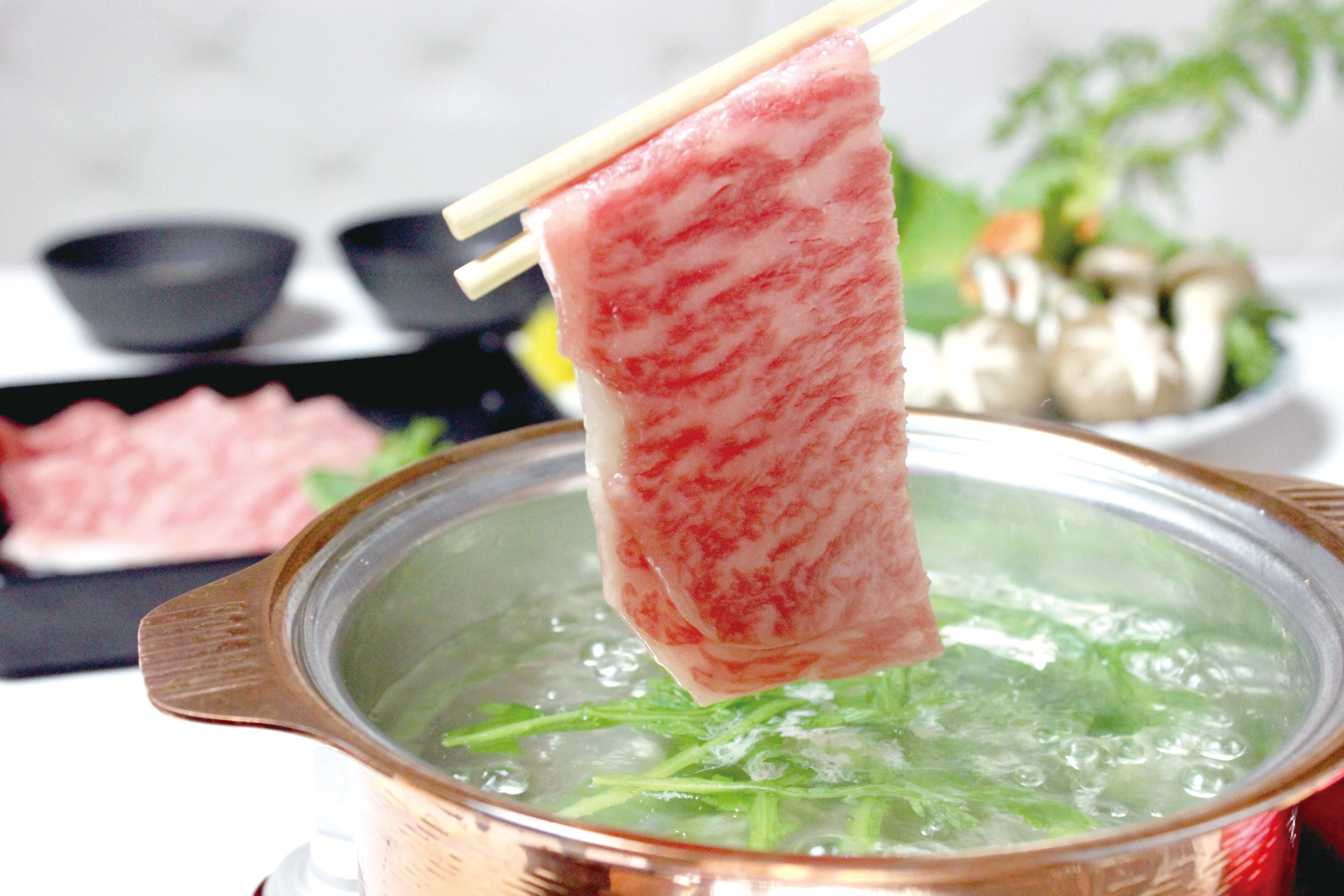 全てのメニューに使用するお野菜は、産地直送の『近江野菜』琵琶湖のパワーと鮮度を感じてください。お一人様でもお楽しみいただける自慢の『しゃぶしゃぶ』は芳醇な香りと柔らかさが特徴の『黒毛和牛』を堪能していただけます。真昆布で丁寧にとった『琥珀だし』と、京料理とともに発展してきた伝統の西京みそをプラスした『西京だし』の2種類をご用意。シェフ特製のタレでお召し上がりください。お一人様でもお気軽にご利用いただけるメニューから、記念日などに最適なアニバーサリープラン