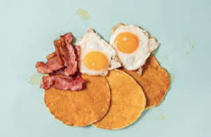 “パンケーキ with ベーコン&エッグ エニースタイル” など