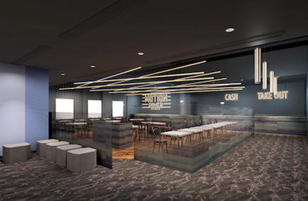 内装デザインはDAIKEI MILLSの中村圭佑が担当します。シンプルで落ちついた空間は、映画館の吸音材の素材を使用したソファーや、ネオンや照明を象徴的に配置し、映画館=光を連想させることで、MOVIX京都でしか存在し得ない現代的なダイナーを表現しました。