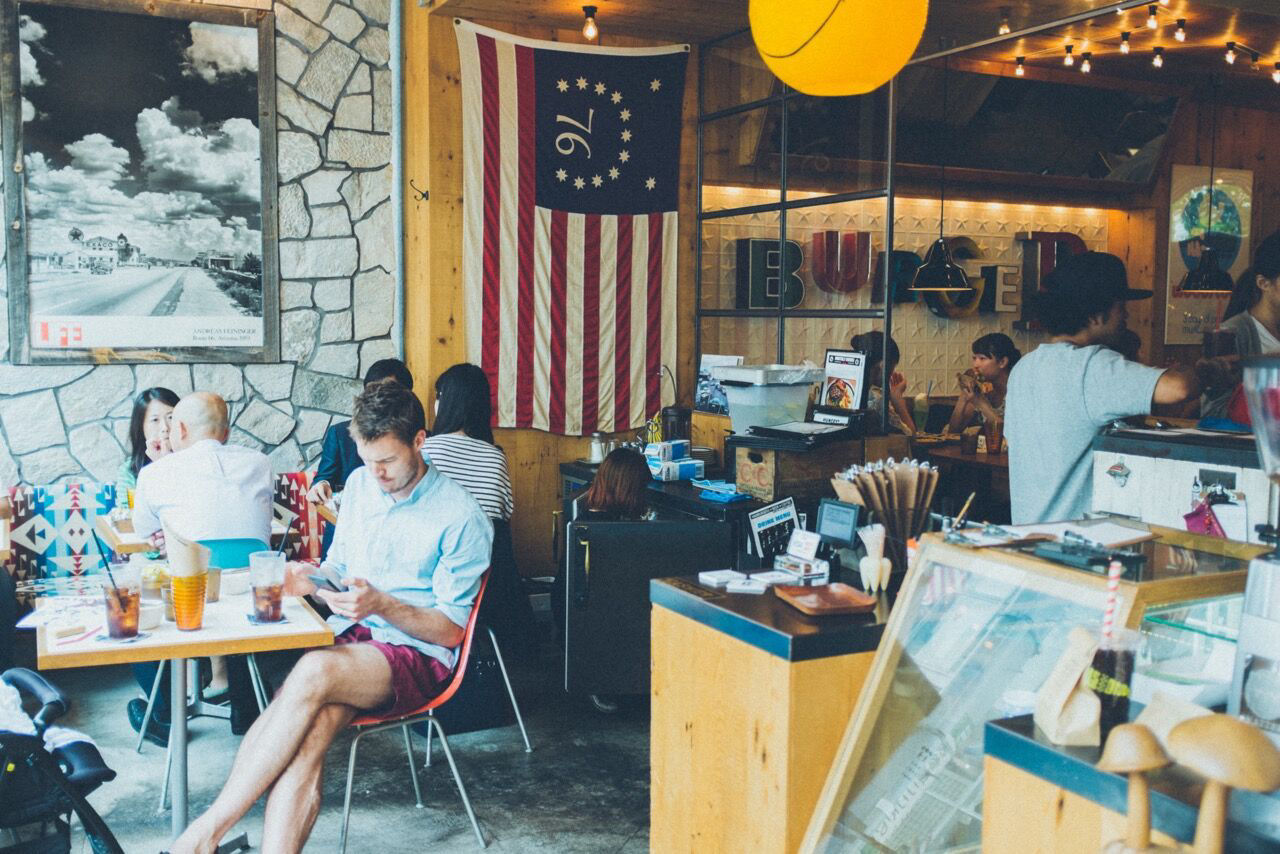 ■映画館を想起させる内装のモダンアメリカンダイナー