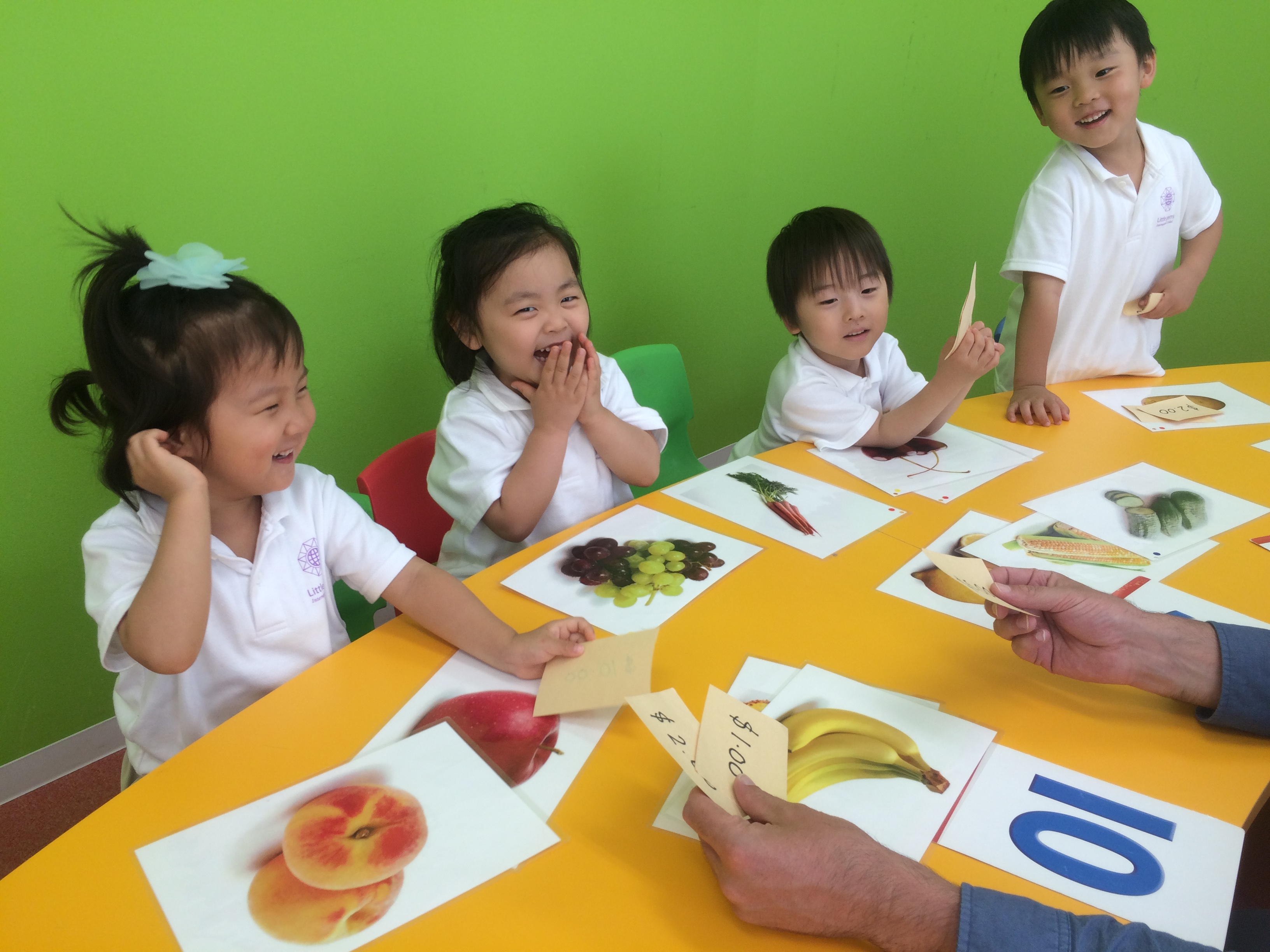 すべてが英語で行われる英語英才教育幼稚園。日本の幼稚園のように年少・年中・年長といった年齢でのクラス編成でなく、英語能力に応じたクラス編成を行っております。算数・理科・地理学を主眼におき、アート・ミュージック・ダンス・ヨガなどの情操教育にも力を入れています。