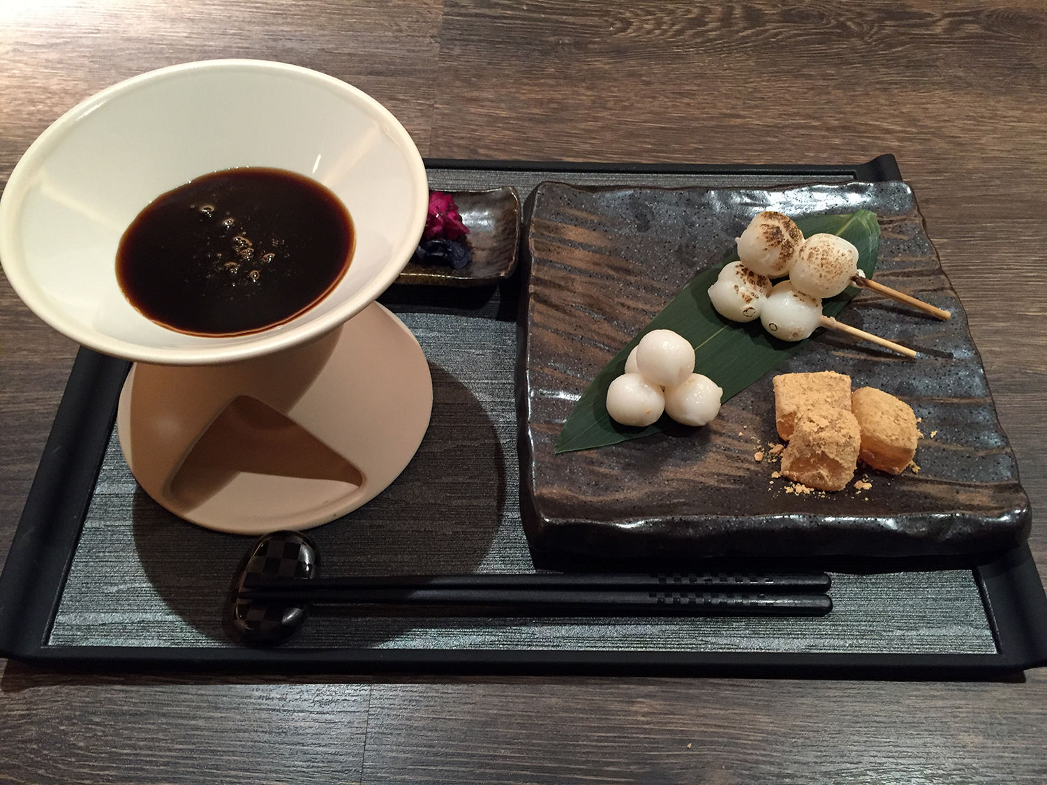 1.栄養素として価値の高い「黒蜜」をコンセプトメニューにした黒蜜カフェ。