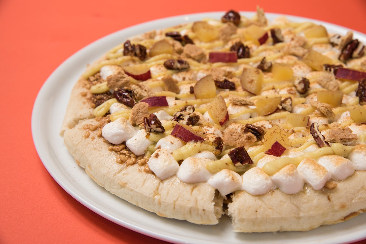 秋限定の「スイートポテトチョコレートピザ」は人気のチョコレートチャンクピザに、スイートポテトのピューレとほくほくのさつまいもをのせた秋らしい贅沢なスイーツに仕上げました。また、シナモンで香りづけしたリンゴ、ホワイトチョコレート、クリームチーズを組合わせた「アップルパイクレープブリュレ」や、数種類のスパイスとホワイトチョコレートの香り高いチャイのフローズンドリンク「ホワイトチョコチャイテール」など、秋にしか味わえないチョコレートの楽しみ方を提案致します。