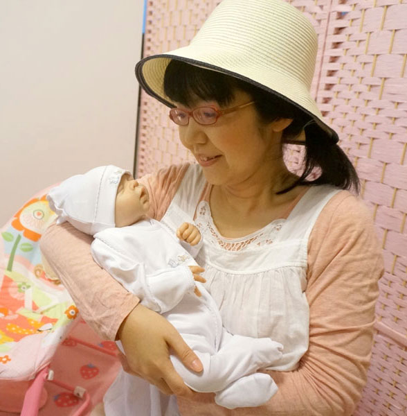 当店は、2013年10月に自社サイトでのリボーンドールの販売を開始しました。これまで850体以上を販売しています。購入者の98%が女性で、年代は40代~70代。子どもを亡くした方、子どもに恵まれない方など、我が子の代わりとして購入される方が中心です。その他、孫の代わりにかわいがる方、子どもを授かれないLGBTの方などの購入もあります。購入された方は、実際のベビー用品を揃えられたり、服を着せ替えたり、本当の子どものようにあやします。中にはベビーカーで連れて外出される方もいらっしゃいます。