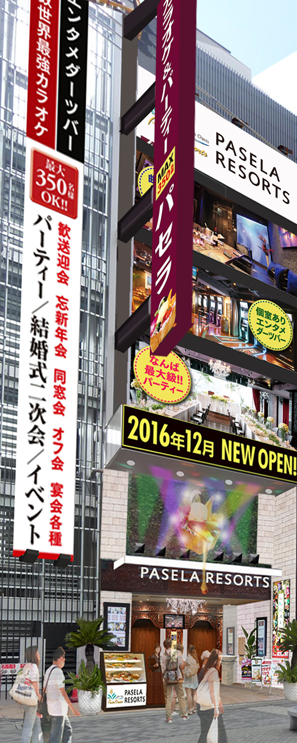 カラオケやダーツが楽しめる多彩な店舗を運営している株式会社サンザ(本社:東京都新宿区、グループ代表CEO:荻野勝朗)は、2016年12月下旬に新エンターテイメント施設「パセラリゾーツなんば道頓堀店」(大阪府大阪市中央区道頓堀1-4-27VENICE SQUARE 1)をオープン致します。