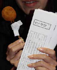 ⇒⑤運気をあげる…コース終盤に串揚げに巻く形で吉以上しか出ないおみくじがついた串、『おみくし』が出されます。おみくじを引いた人に良いことが起きた場合、店におみくじを返しにくることで割引を受けることができます。