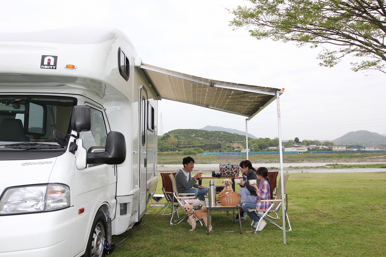 キャンピングカーで旅行をする様子