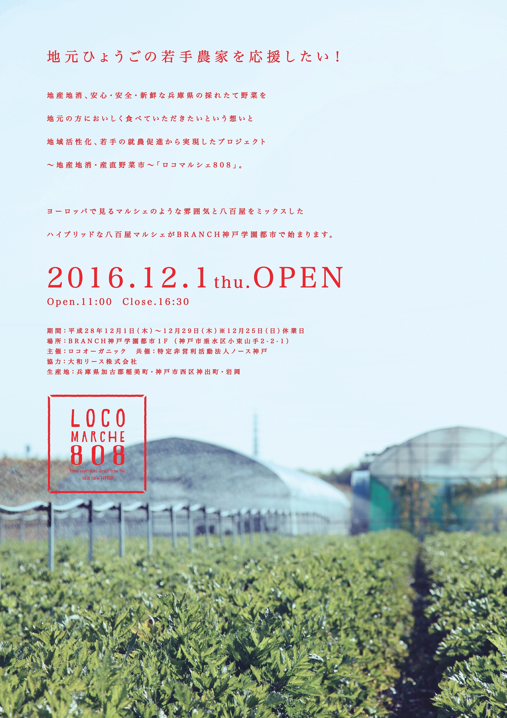 ヨーロッパで見るマルシェの様な雰囲気と八百屋をミックスさせたハイブリッドな八百屋マルシェが神戸市垂水区にある大和リース株式会社が運営する商業施設BRANCH神戸学園都市で始まります。