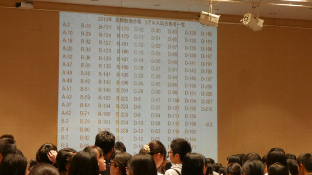 約500人の受験生と、約60人の講師が一堂に会し、3日間かけて受験勉強を行います。ハイライトは、入試本番のスケジュールを完全に再現する「リアル入試」(中3生対象)。緊張感ただよう雰囲気のなか、志望校合格を目指します。翌日には「合格発表」も行い、「受かった!」「だめだった(泣)」と、泣き笑いのシーンも見られます。