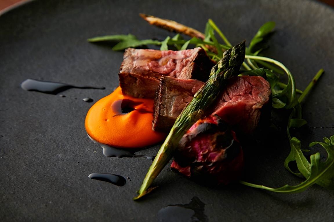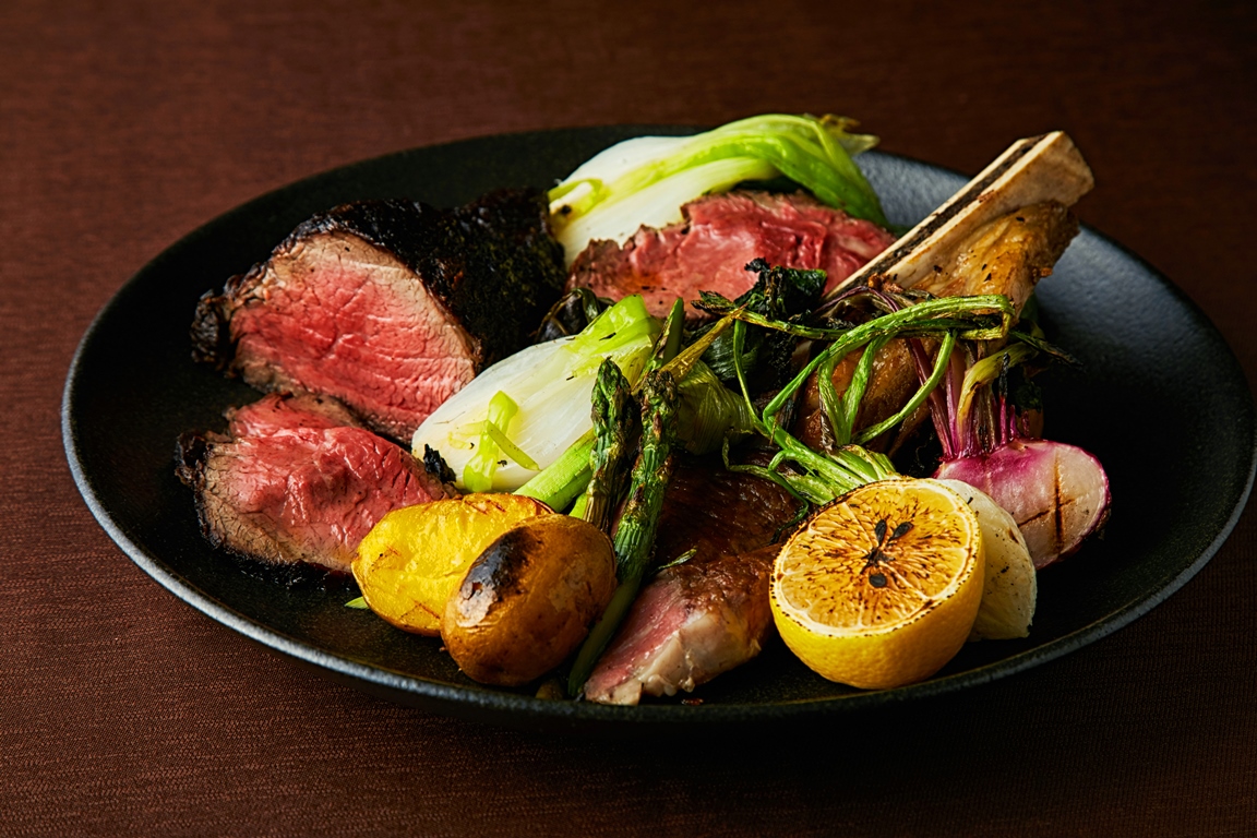 表面にしっかりと焼き色をつけ豪快に焼き上げます。熟成と薪の両方の香りをお楽しみいただけます。