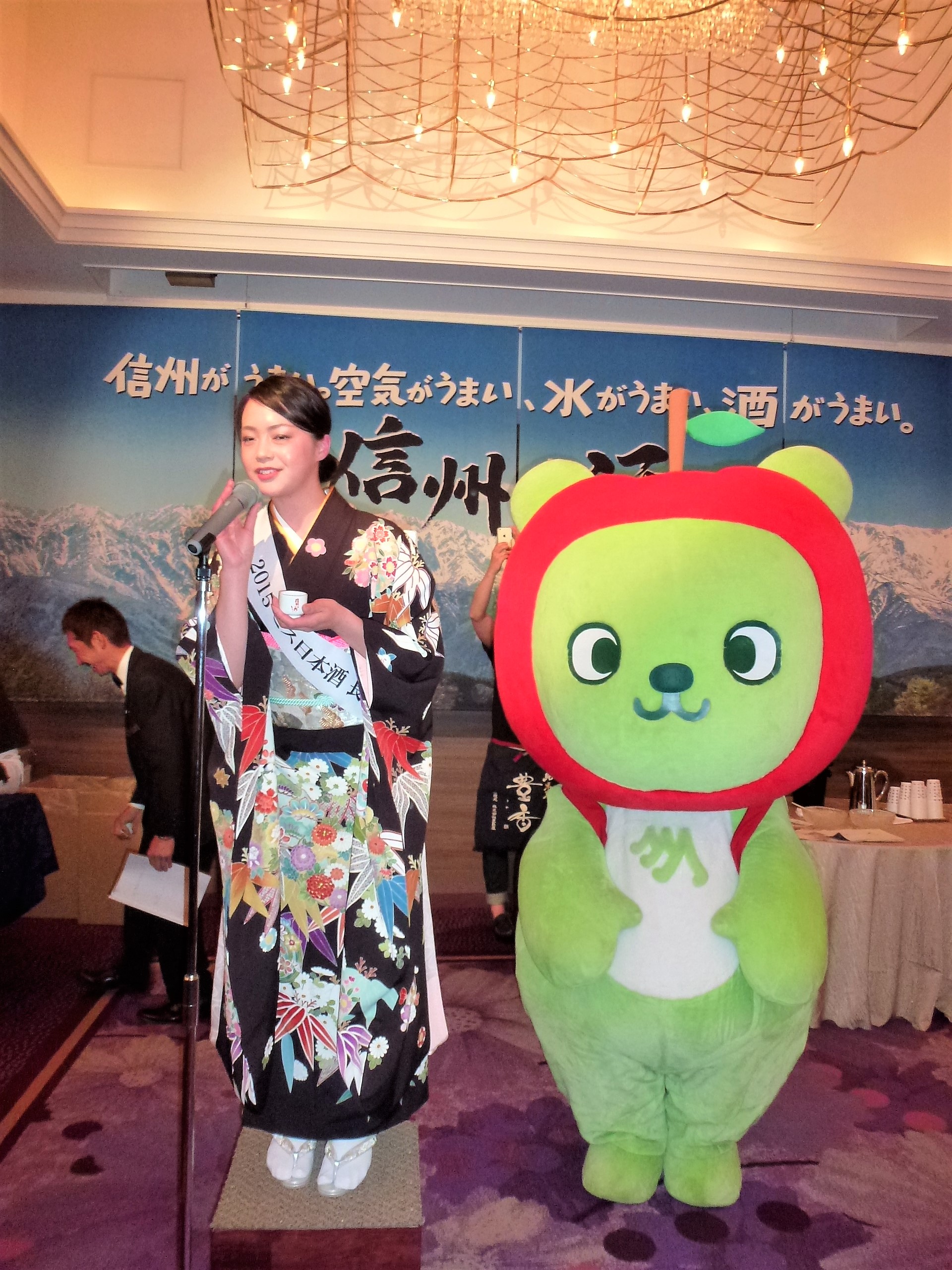 メインの試飲・展示会には500銘柄にのぼる清酒が並びます。14時~16時は卸売・小売業者など酒類業界関係者限定ですが、16時以降は一般の来場者も入場できます。来場者全員にオリジナル猪口(1個)をプレゼントします。また、「ミス日本酒長野」の家高里永子(やだかりえこ)氏が来場(予定)してお客様をお迎えし、お酒を注ぐ等のサービスを提供していただくほか、「長野県原産地呼称管理制度」の認定酒(県産酒米のみ使用の純米酒)を用意して「利き酒大会」も開催します。