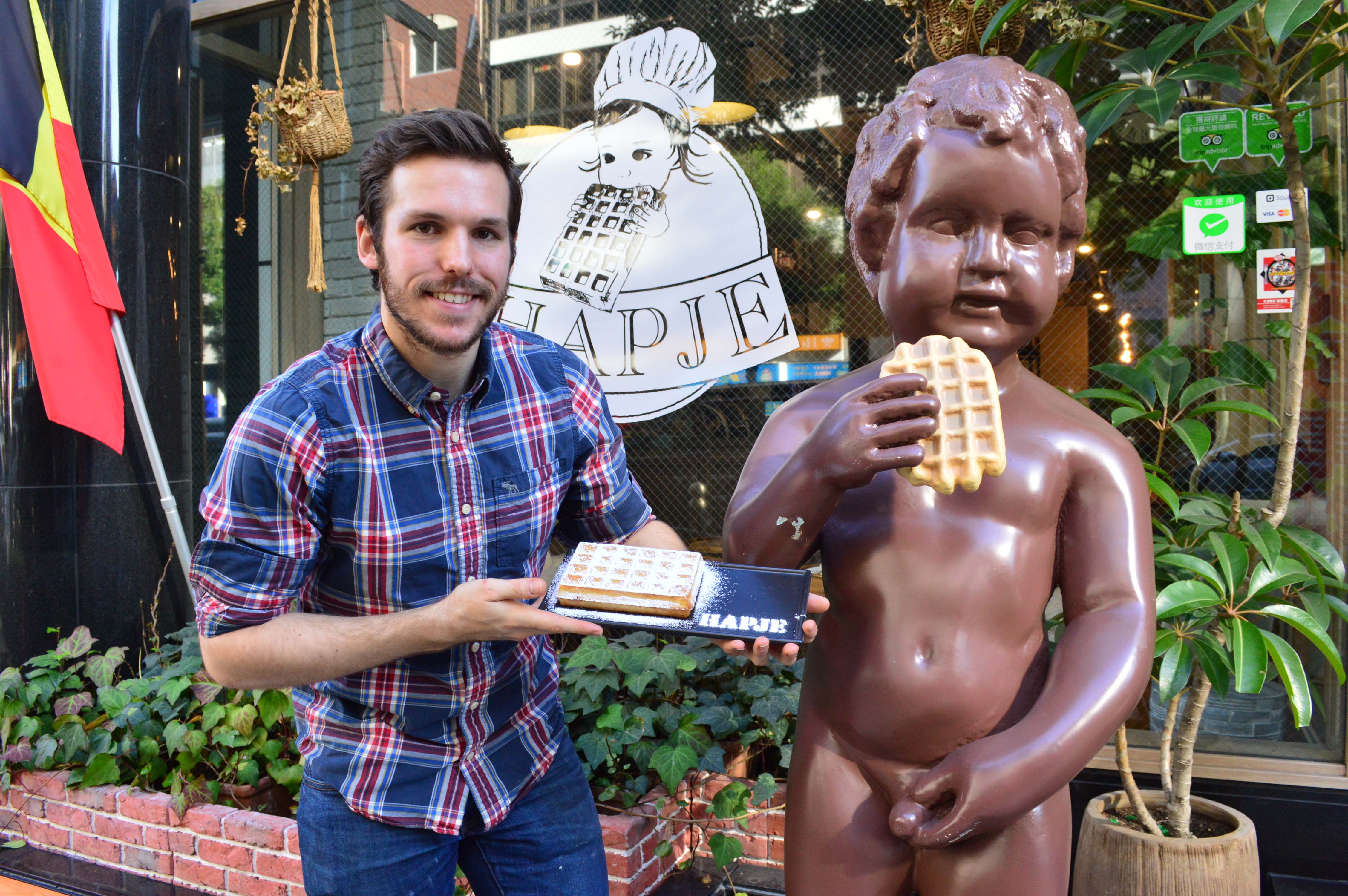 2016年5月にオープンした「hapje」は、ベルギー人のオーナー・ハンッセンス イェルが手掛ける本格ブリュッセルワッフル店。チョコレートソースや、バター、アイスクリームなどベルギー産の食材にこだわった本場のブリュッセルワッフルを焼きたてで提供しています。ワッフルの食感はとても軽く、中はフワフワで新食感の味わいを楽しめます。ワッフルの大きさは16センチ×11センチで、シンプルに粉砂糖を上からふりかけて食べるのがベルギー流。もちろん、ホイップやチョコレート、果物などもトッピングもご用意しております。