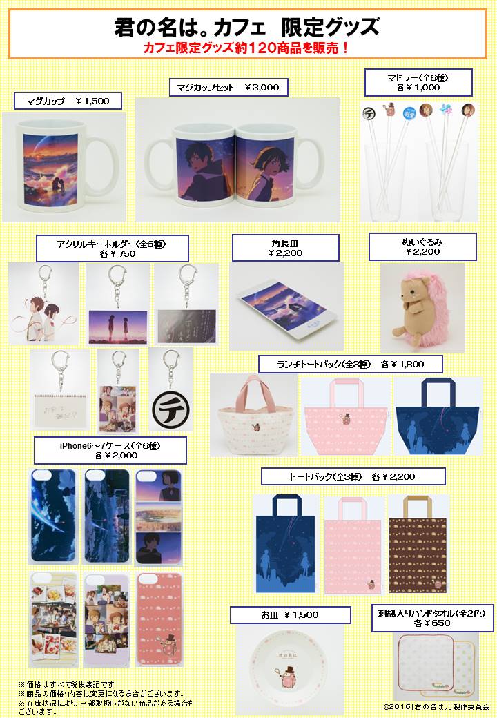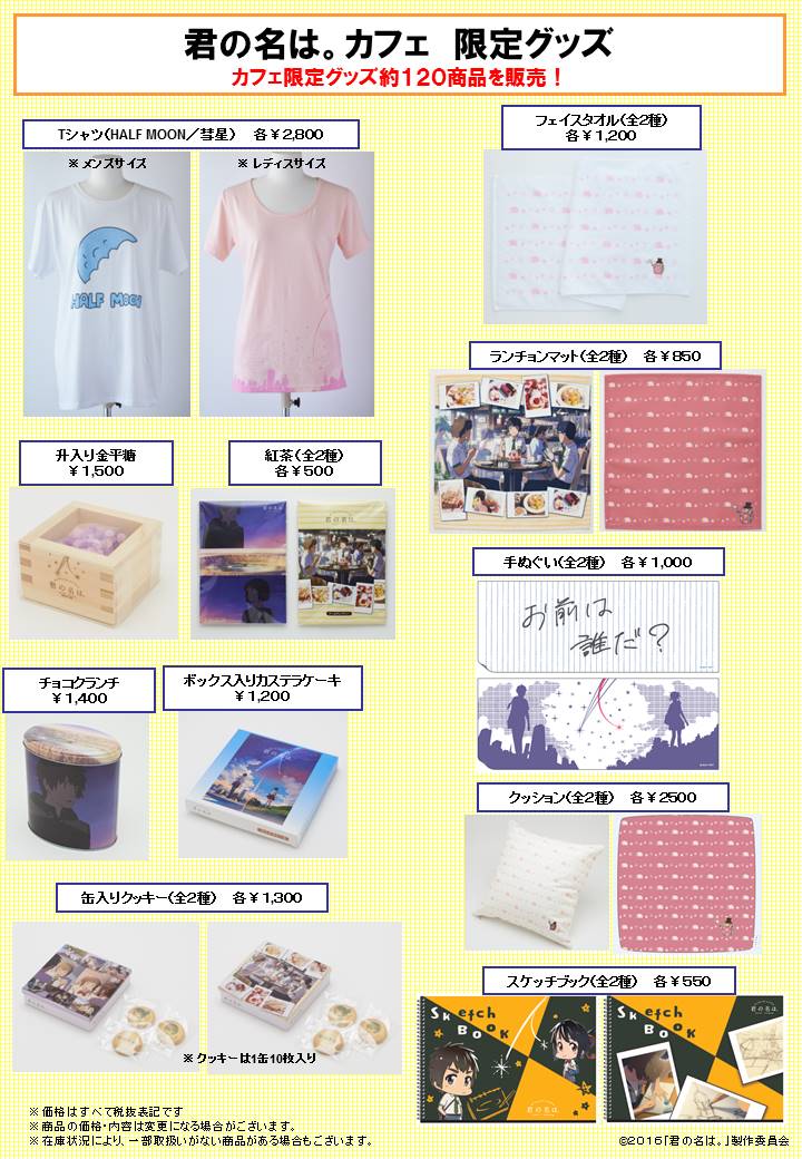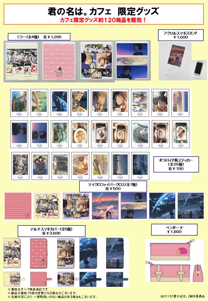 君の名は。カフェ 限定グッズ カフェ限定グッズ約120商品を販売!