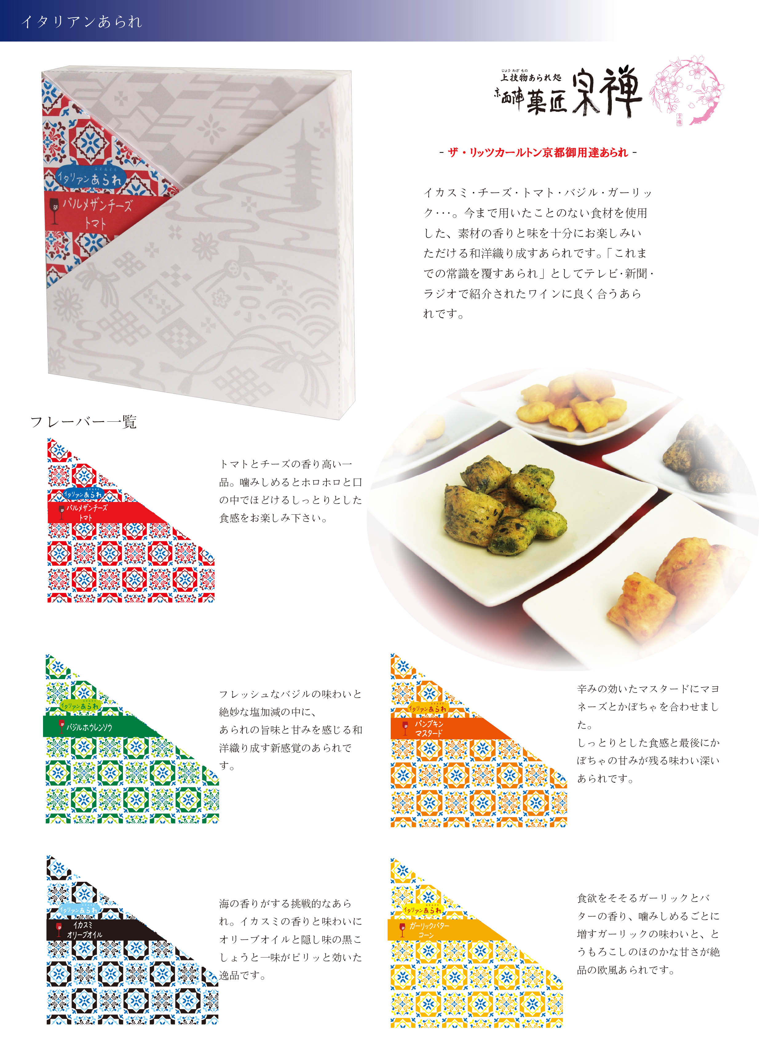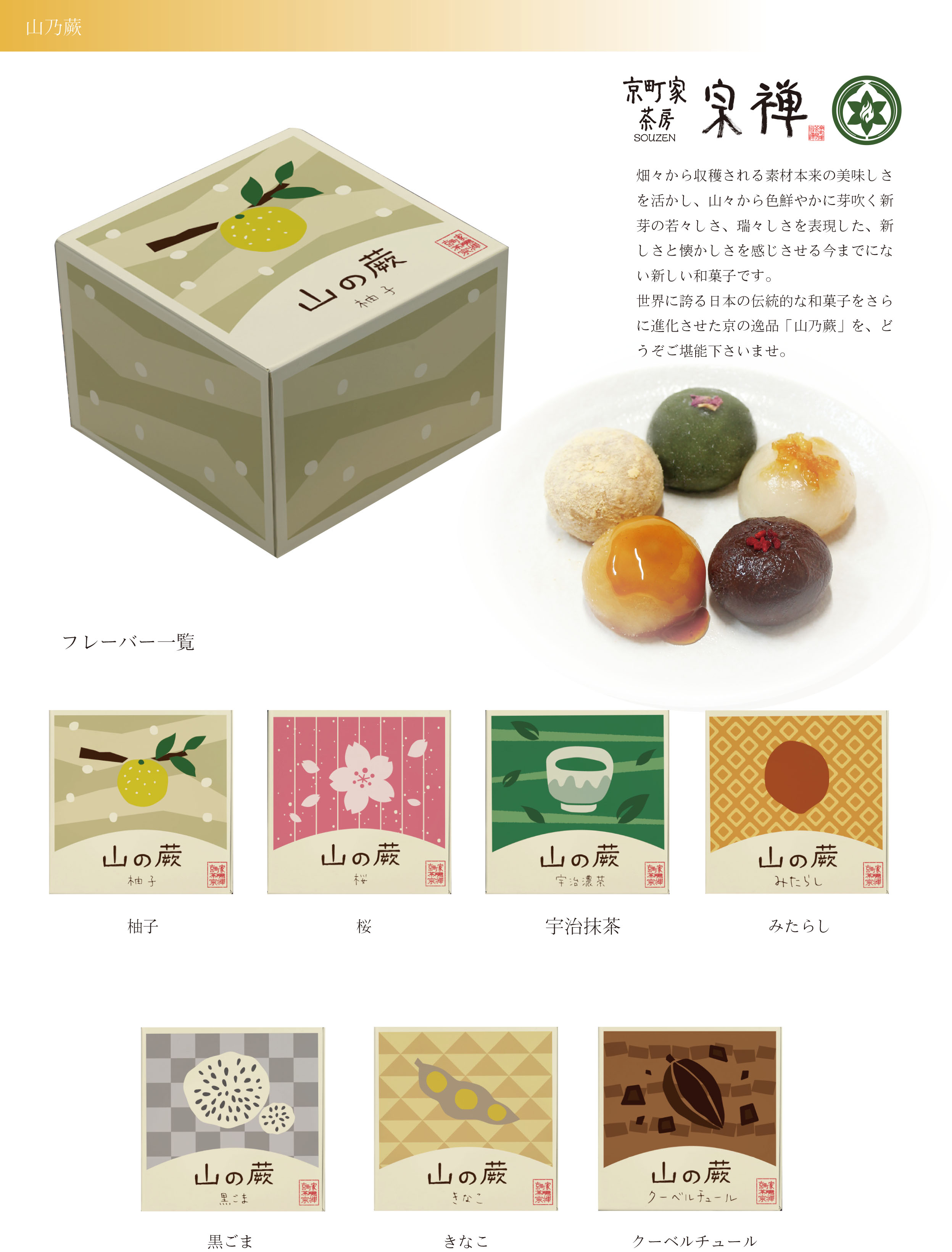 ゴールデンウィーク、葵祭、祇園祭と様々なイベントを迎える京都で、山本 宗禅の作りだすこだわり商品ばかりの新しい京菓子の世界が、京都の町をさらに賑やかに華やかに様々な色に彩る・・・。