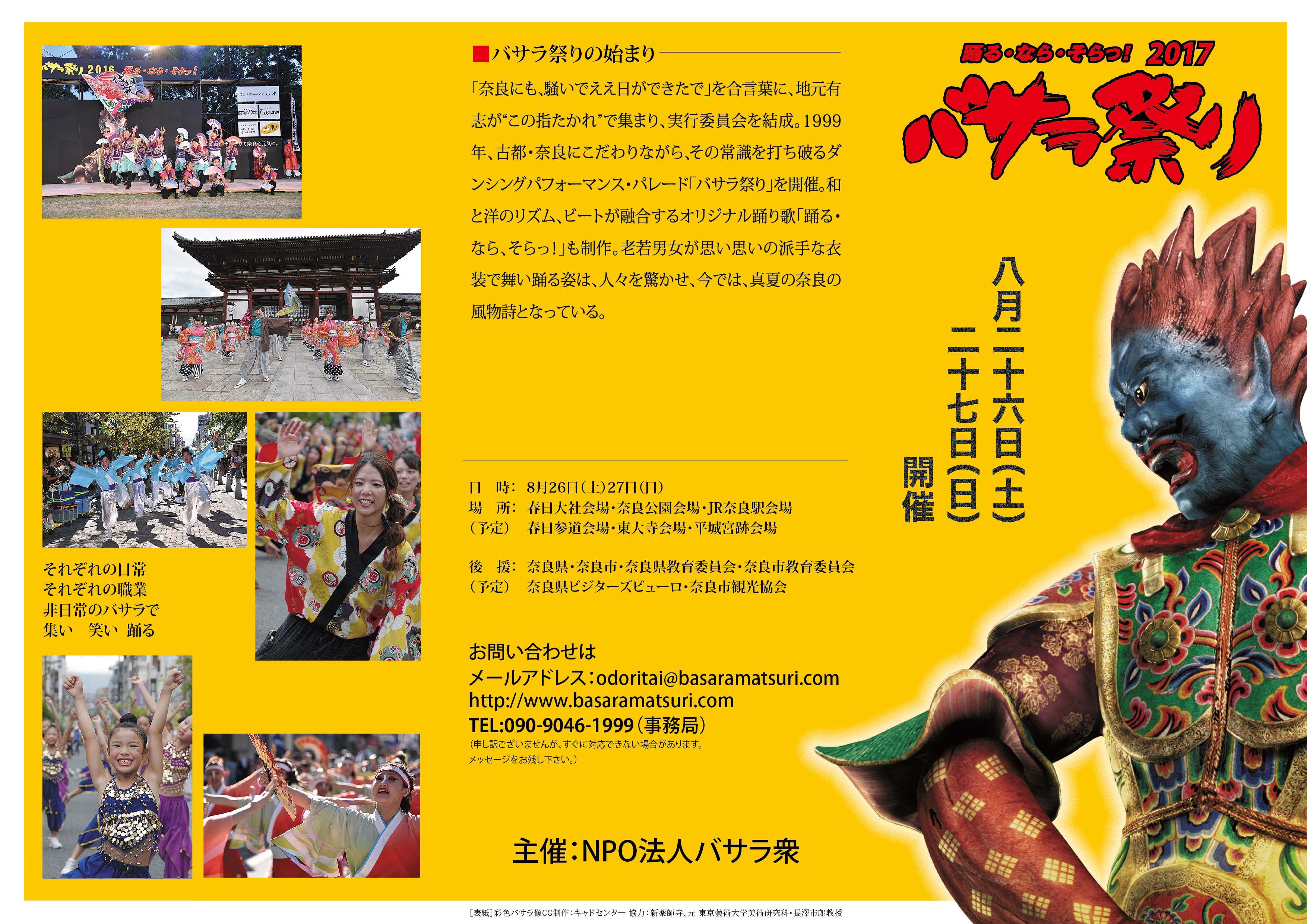 NPO法人バサラ衆では本年度の参加踊り隊を募集しております。昨年は約1000人の踊り人が参加し、奈良の夏の終わりを熱く盛り上げてくれました。伝統ある奈良の地で生まれた、まだまだ新しい祭り『バサラ祭り』です。是非エントリーください。