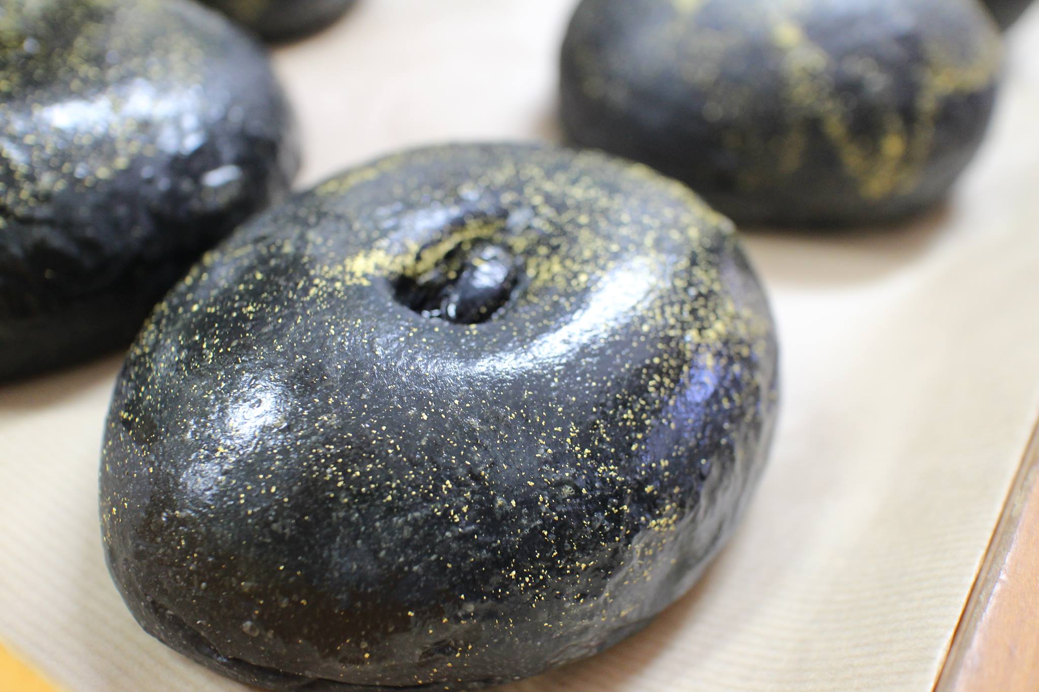 高級感のあるゴールデン黒豆アンパンが期間限定で登場します。 黒と金の色合いは贈答用としてもおすすめです。 竹炭を練り込んだふわふわの黒い生地にしっとりとした黒豆あんが入っています。