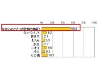このアンケートは、全国の20歳代から50歳代の女性415人を対象にしたアンケートで、サンダルを履く季節に最も気になる素足の悩みを聞いたところ、54.3%が「かかとのかさつき」を挙げています。
