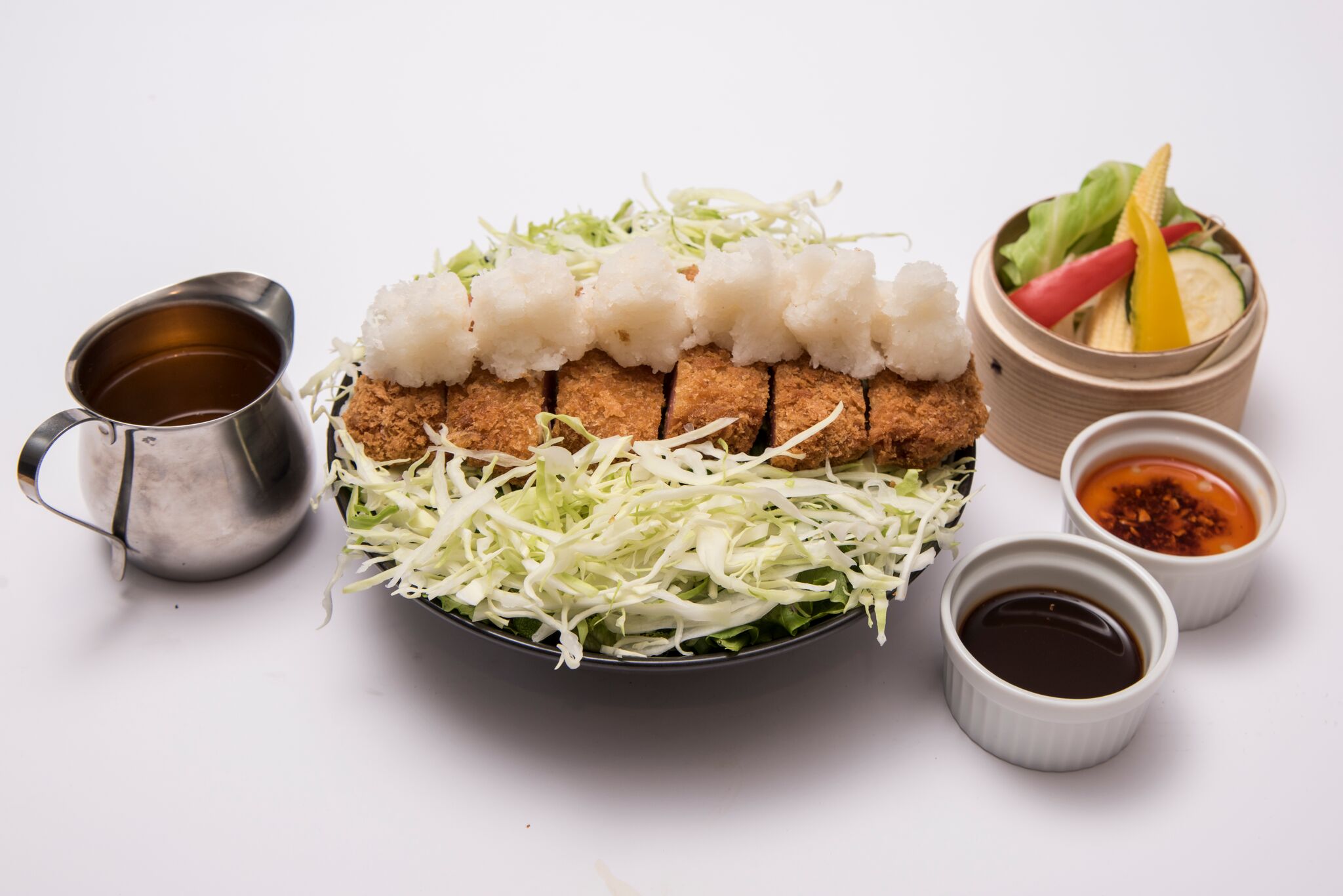 さっぱりとした六個の大根おろし「ロッコオロシ」と頂くソースカツ丼。