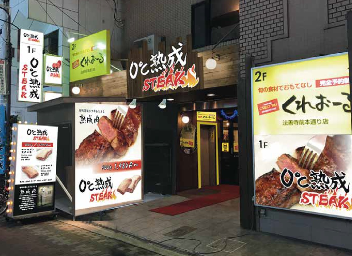 大阪を中心にたこ焼店、お好み焼店を展開する株式会社くれおーる(本社:大阪市中央区、代表取締役社長 加西芙子)は、最新鋭の大型熟成庫を店内に備え、平均温度0℃・湿度99%で店内熟成させた牛肉をステーキで提供する新業態「0℃熟成ステーキ本店」を2017年6月30日(金)にオープンいたします。