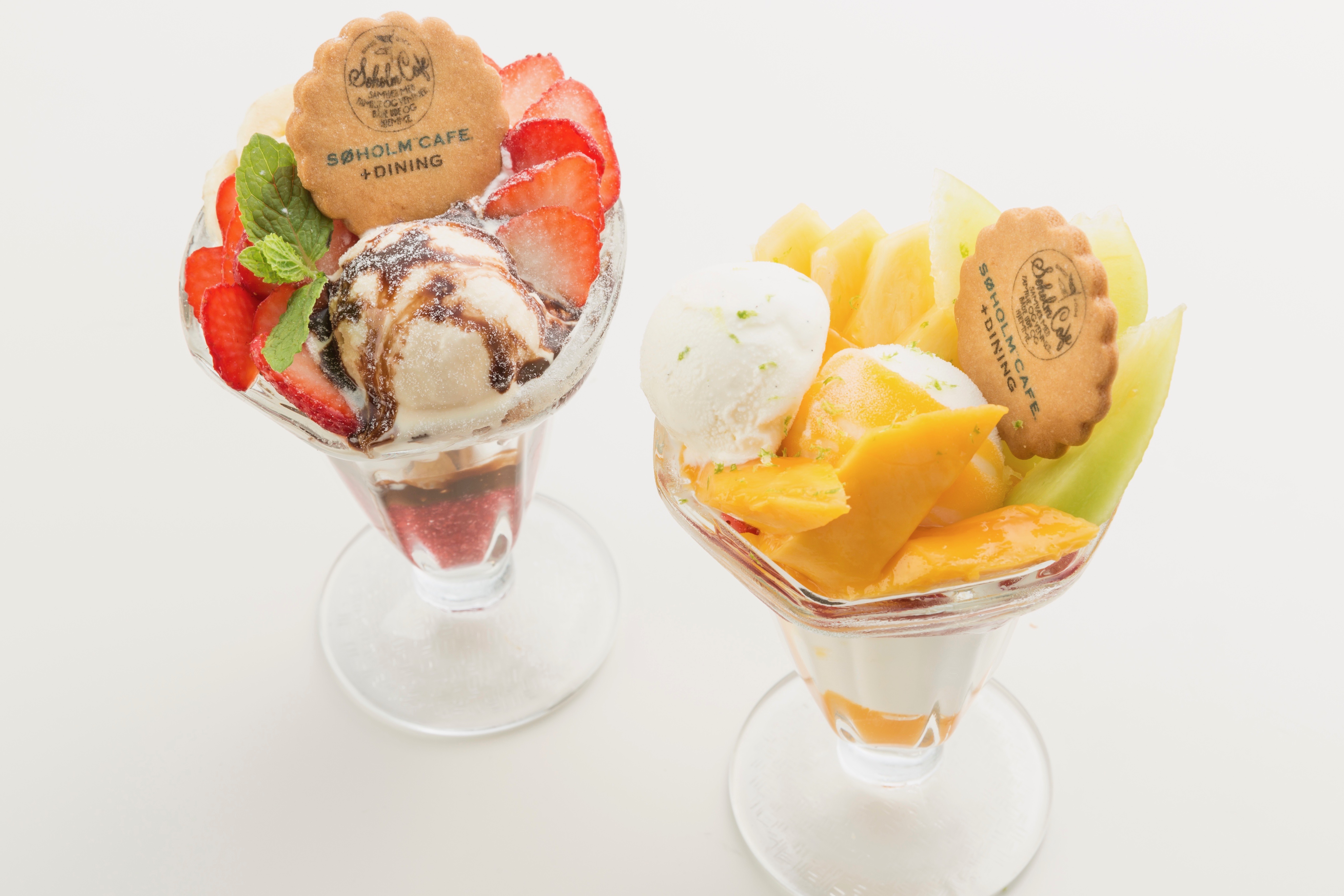 苺とチョコ・たっぷりフルーツの王道パフェの2種類からその日の気分に 合わせてお選びください。