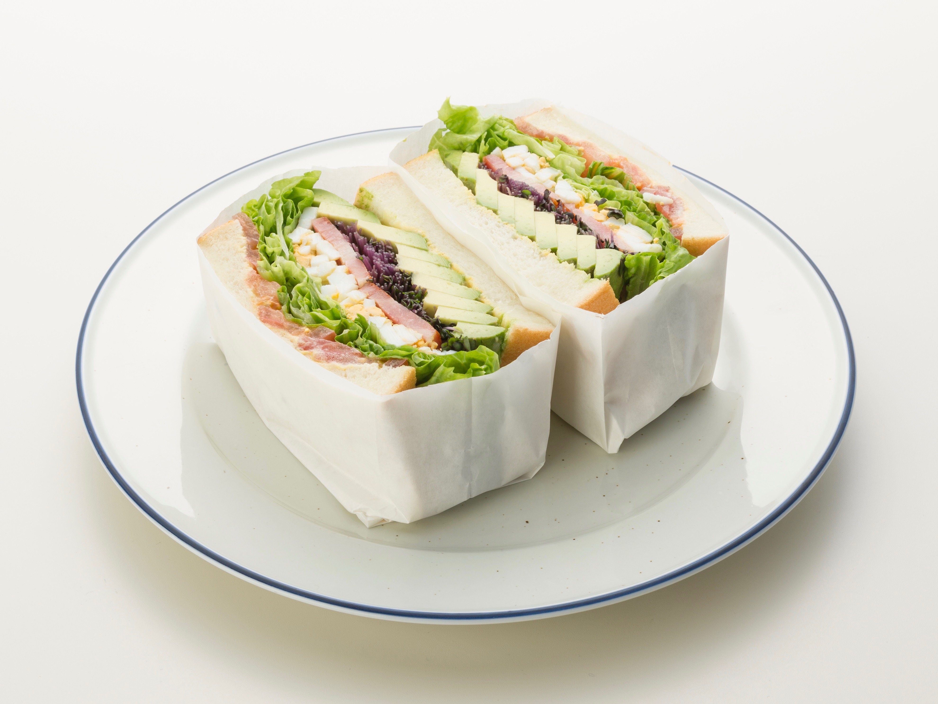 ベーコン・サニーレタス・トマト・スプラウト・アボカドの入ったボリューム満点のサンドイッチ。