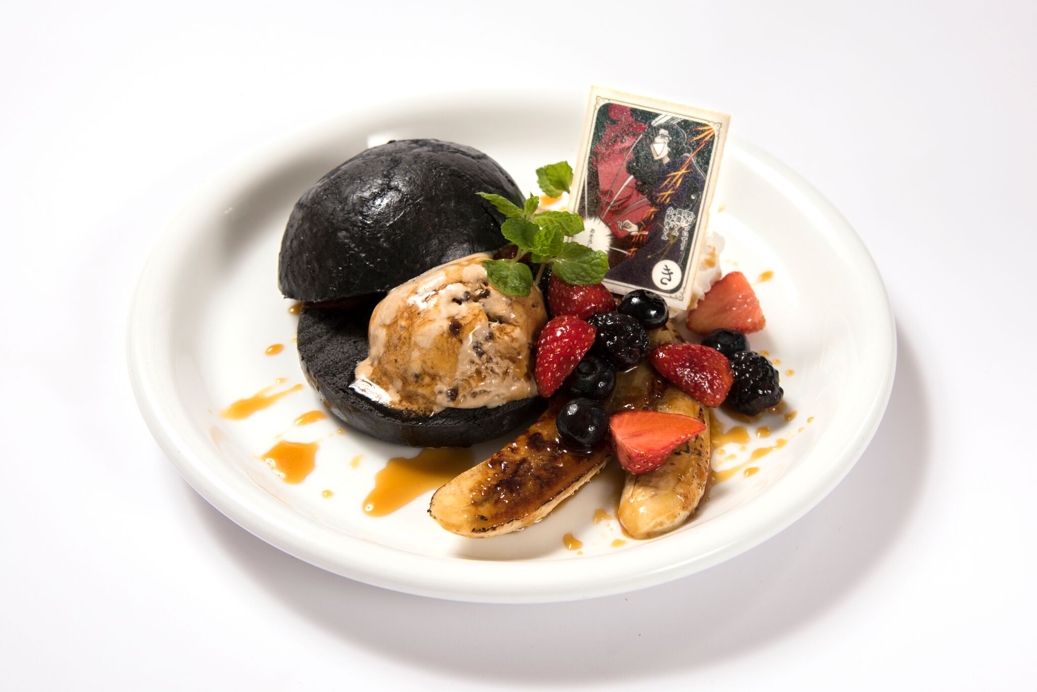 普通の食事系バーガーではなく、ブラックバンズを使用した、デザートバーガー。モカアイスとキャラメルベースのバナナがポイント。
