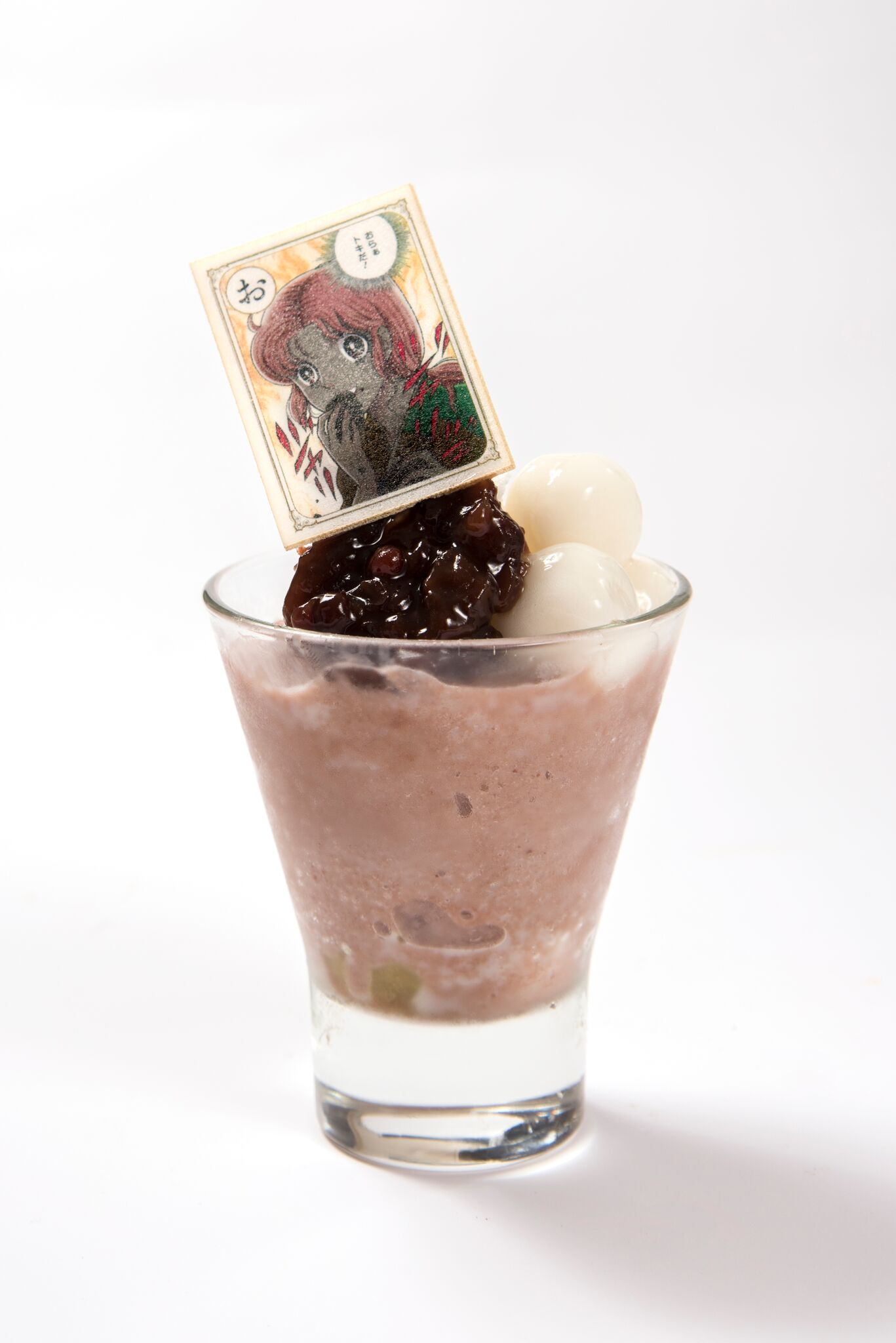 主人公・マヤがいやがらせで泥まんじゅうに差し替えられる前の本物のまんじゅうをイメージしたスムージー。あずきと白玉の和風仕上げ。