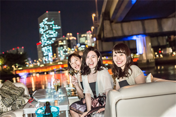 パセラリゾーツの名物といえば、リムジンでのクルージングですが、街中での豪華な演出を川の上でも楽しんでいただける新しいスタイルのパーティープランです。