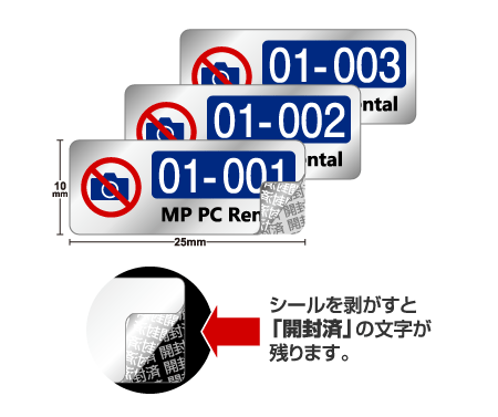 剥がすと開封済みの文字が残るセキュリテイ効果バツグンの素材を採用。