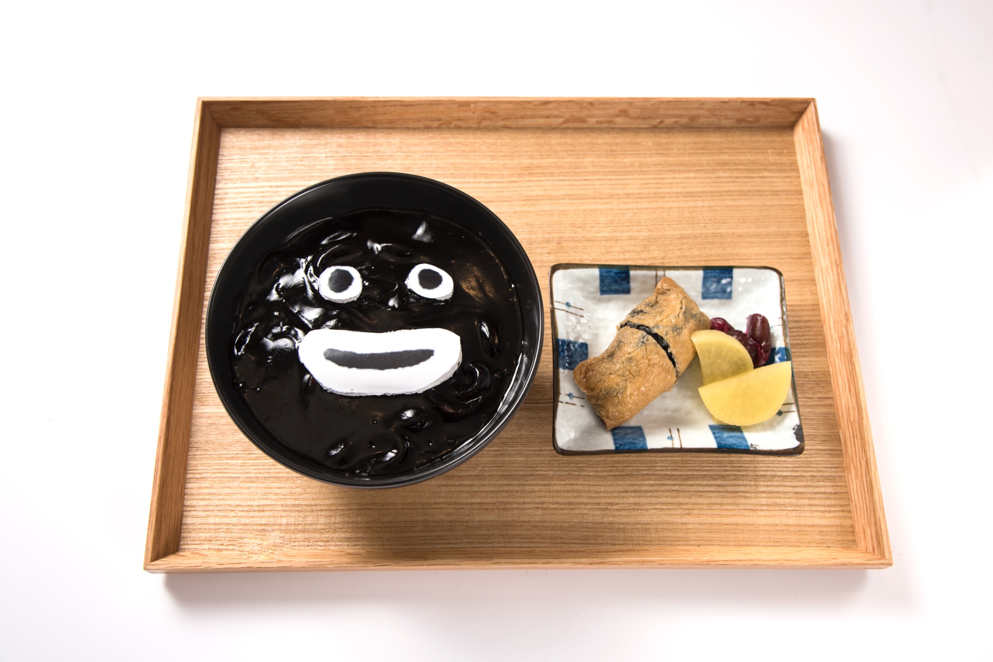 大阪名物の“かすうどん”をカレーうどんにアレンジ。モナカでできたズラー氏の顔は食べることができます!
