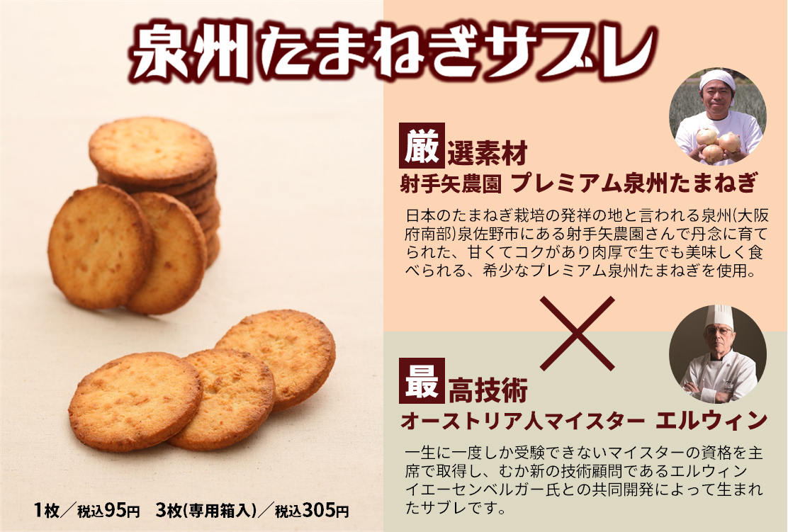 そう考え、マイスターのエルウィンと共に試行錯誤を繰り返し完成した「泉州たまねぎサブレ」。