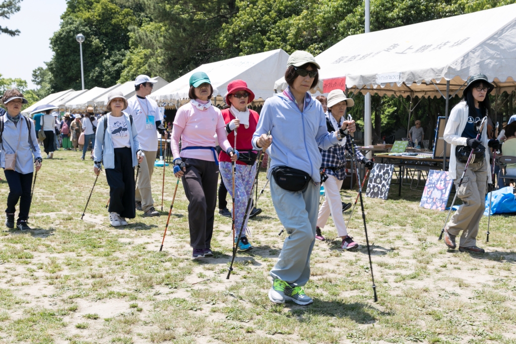 「ヘルシージョイ」では、ヨガ、トランポリン、ノルディックウォーキングなど、10 種類以上の体を動かす体験ができます。どれもインストラクターのもと、初めての方ができる内容ですので、気になるエクササイズなどが自分に合うかやってみてください。