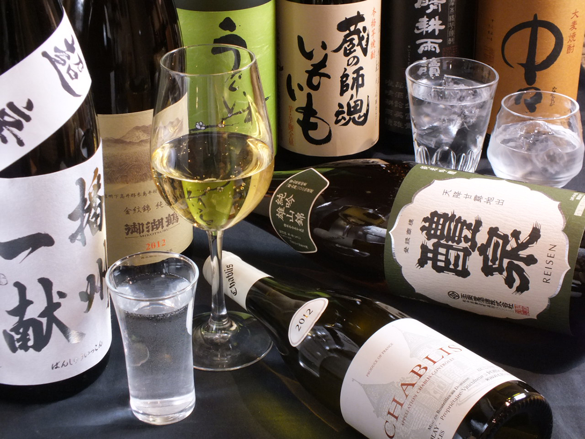 日本酒、焼酎に納得の銘柄を加え、おすすめできるビール、ワインをご用意しております。