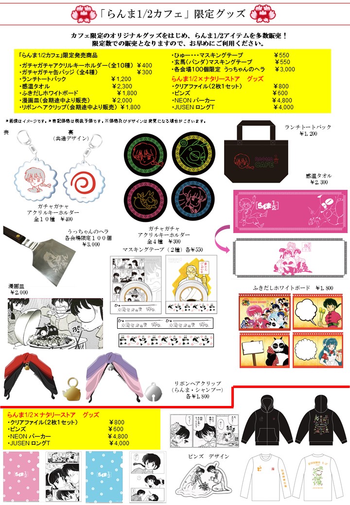 カフェ限定のオリジナルグッズをはじめ、らんま1/2アイテムを多数販売!限定数での販売となりますので、お早めにご利用ください。