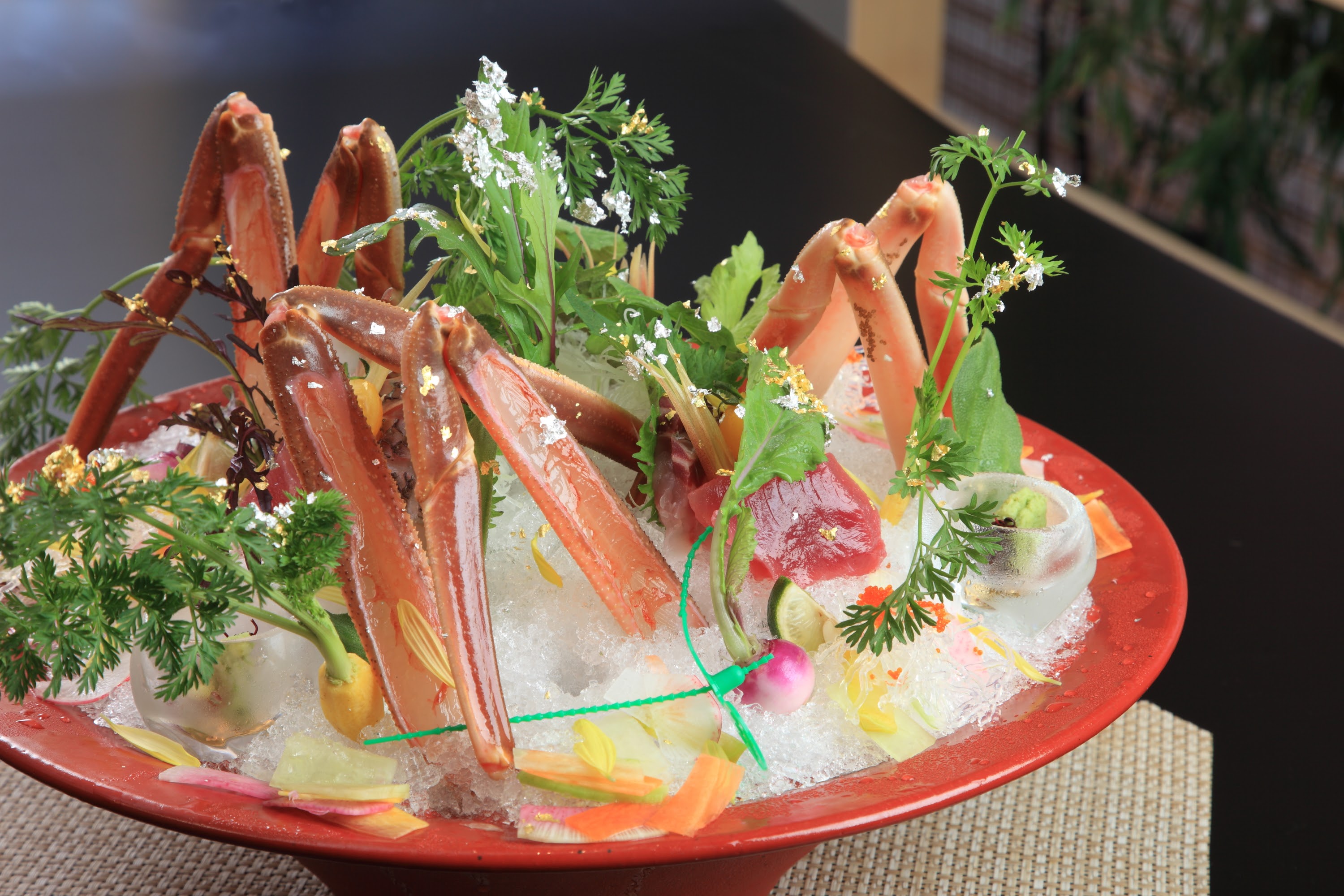 内容:「どこよりも、新鮮で活きの良い間人ガニを調理する」というコンセプトでカニが生息する環境と同じ設定のイケスを有しております。間人ガニの中でも「極上」と称される、特に身のしっかり詰まった「番ガニ」のみを仕入れ、イケスからあげたての活きの良いカニをカウンターにて目の前で豪快にさばいて、自家農園の無農薬や地魚と共に彩あるコースにてご提供致します。