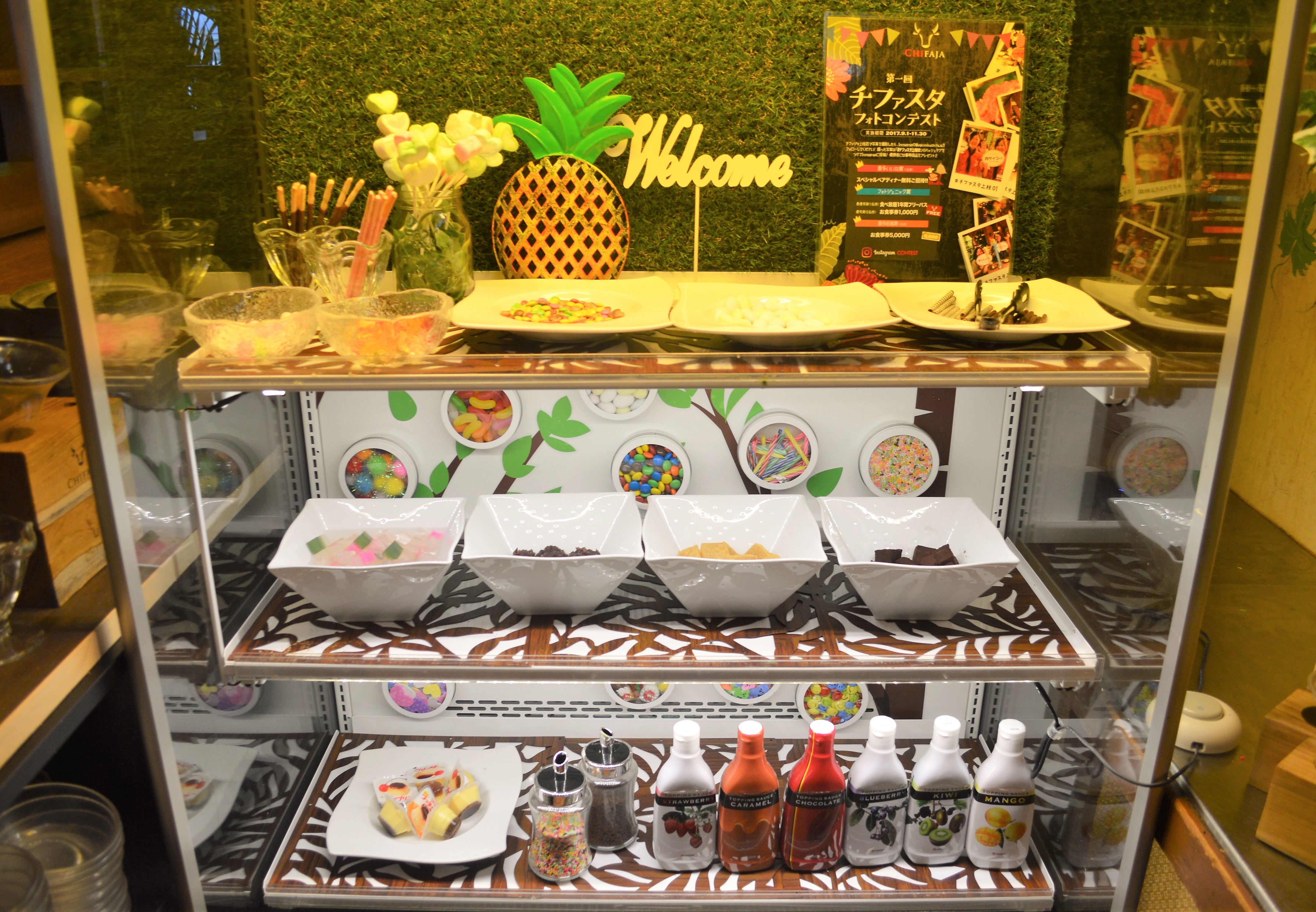 今回のリニューアルの目玉である全席から見えるオープンライブキッチンのほかにも、生チョコわらび餅や、プリンなど約30種類のトッピングを自分好みにアレンジしてオリジナルパフェを作成できる「パフェコーナー」や、雨天時に駐車場まで送り迎えをする当店独自の送迎カート「モーモーカート」の運転、吹き抜け2階部分に位置する高級感あるテーブル席など、初の試みがつまった店舗に仕上げております。