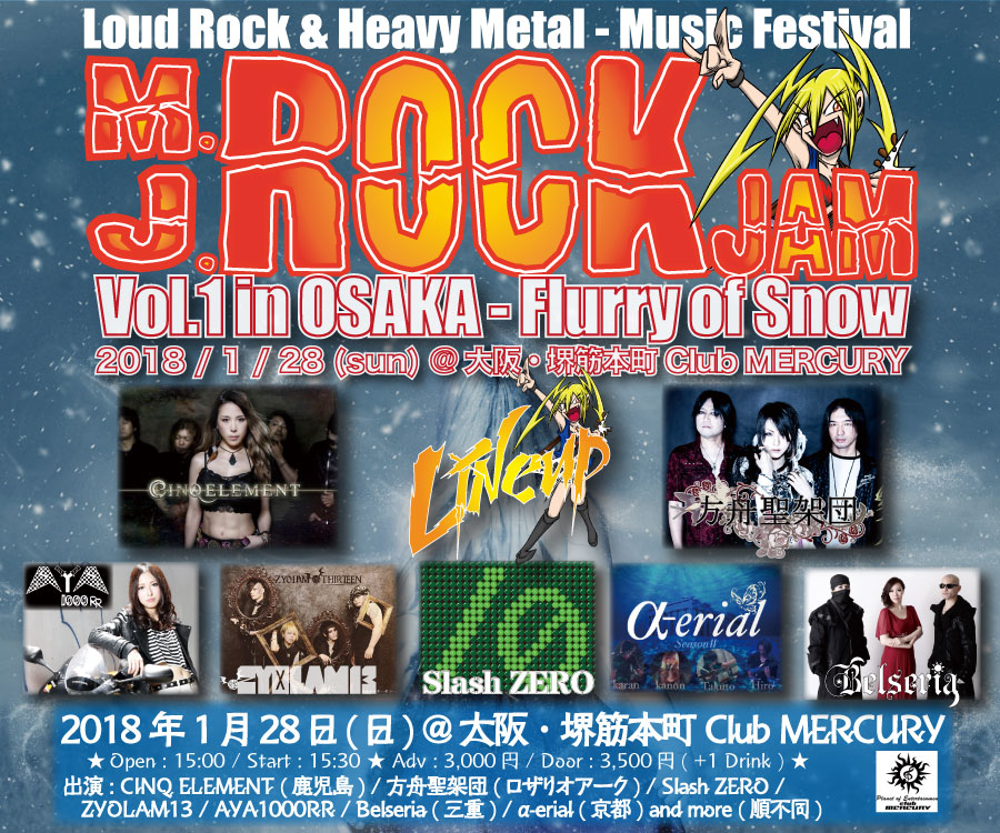 Webマガジン「METAL JAPAN」が主催するライブイベント「M.J. ROCK JAM」が2018年1月28日(日)よりスタート!第1回目は、2018年1月28日(日)に大阪・堺筋本町にあるライブハウス「Club MERCURY」にて開催。出演陣もインディーズ界で精力的に活動しているアーティストを中心に熱いイベントをお届けいたします。