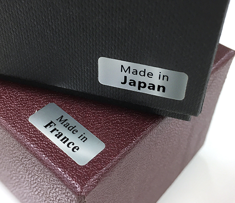 Made in Japanなど生産国・原産国を表示するシール。