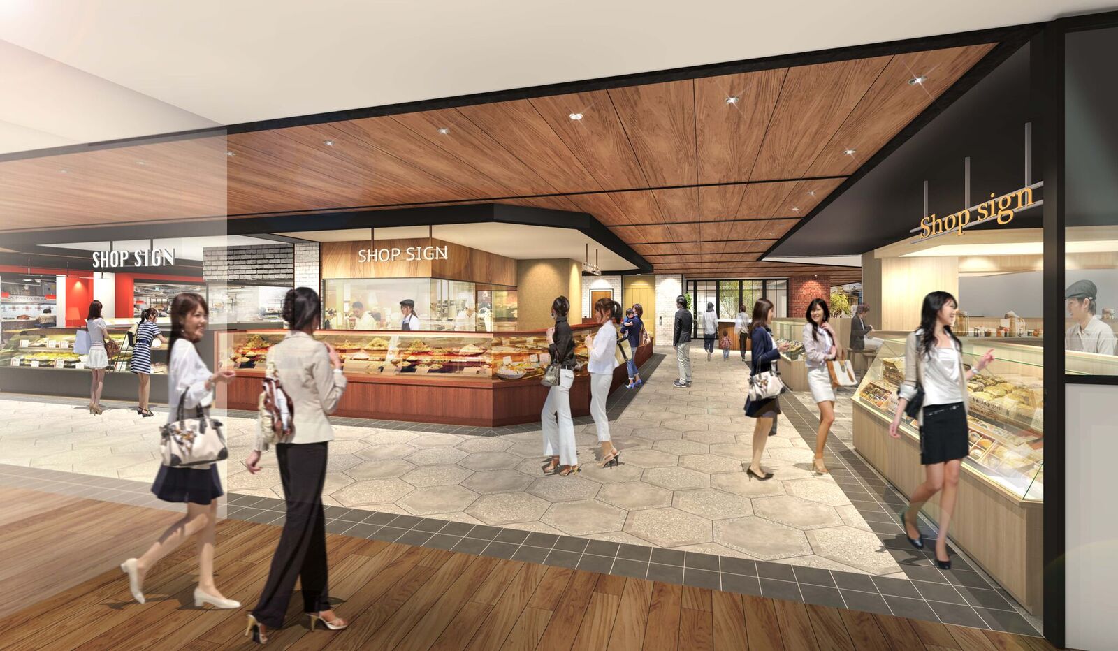 約860坪を誇る「LUCUA FOOD HALL」では、様々な「食」のシーンがボーダレスに融合した空間で、「食」に関するシーンに全方位で対応できるエリアを開発いたしました。