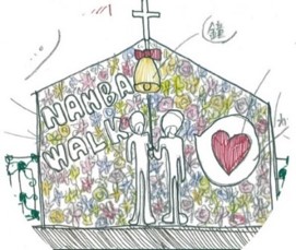 「お花の教会」の裏側は、 花の美しい色彩グラデーションを楽しめる配置にしたり、ハートの吹き出しを設けてみたりなど、学生ならではの瑞々しい発想が盛り込まれています。