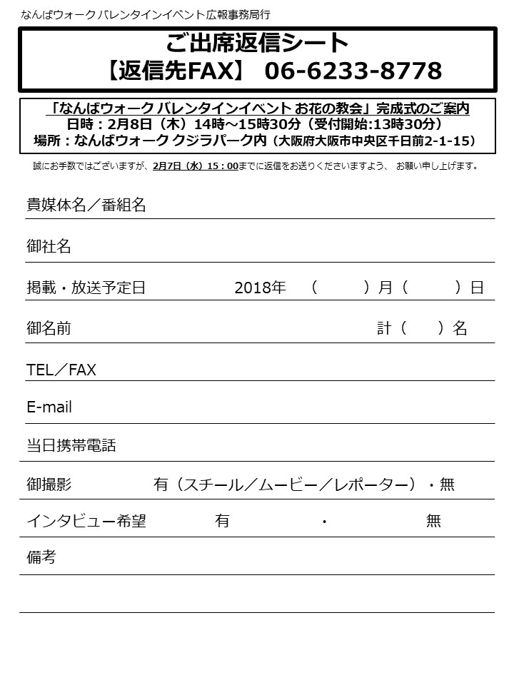 なんばウォーク バレンタインイベント 広報事務局 担当:齊藤