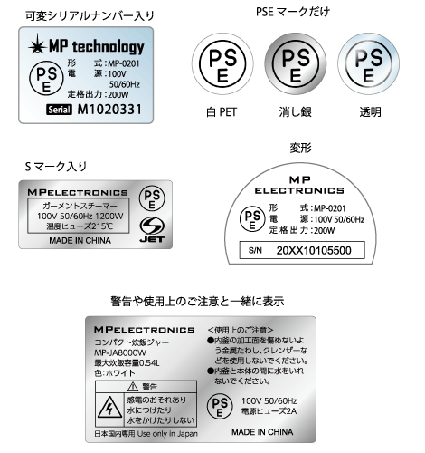 丈夫なPSEマークシールが簡単セミオーダーで。