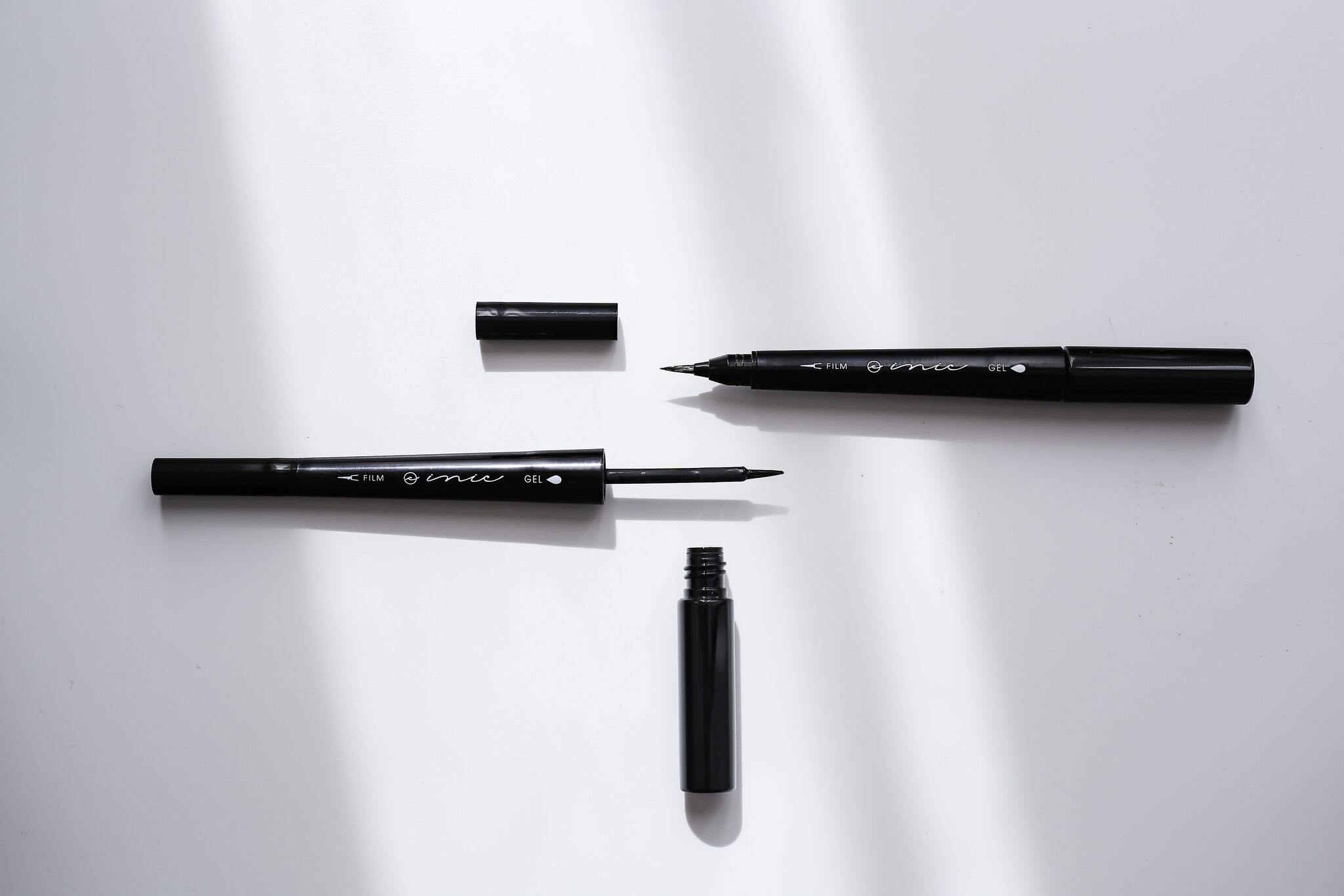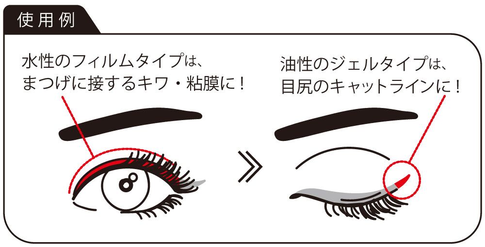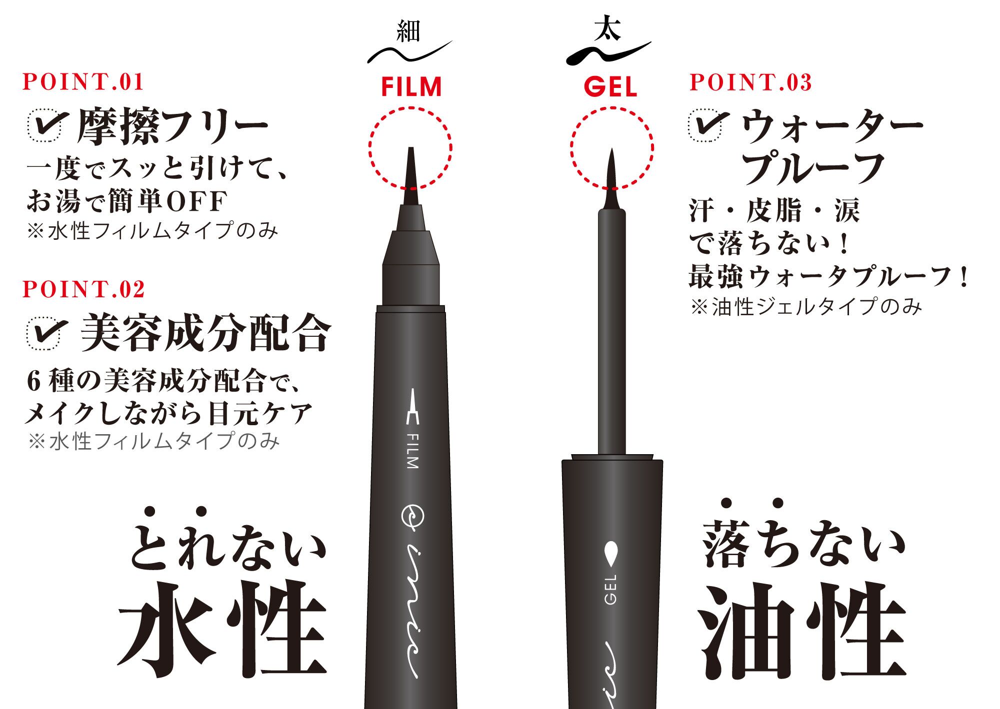 ※2,水性リキッドライナー(筆ペンタイプ)と油性ジェル(つけペンタイプ)を組み合わせた製品形状が業界初