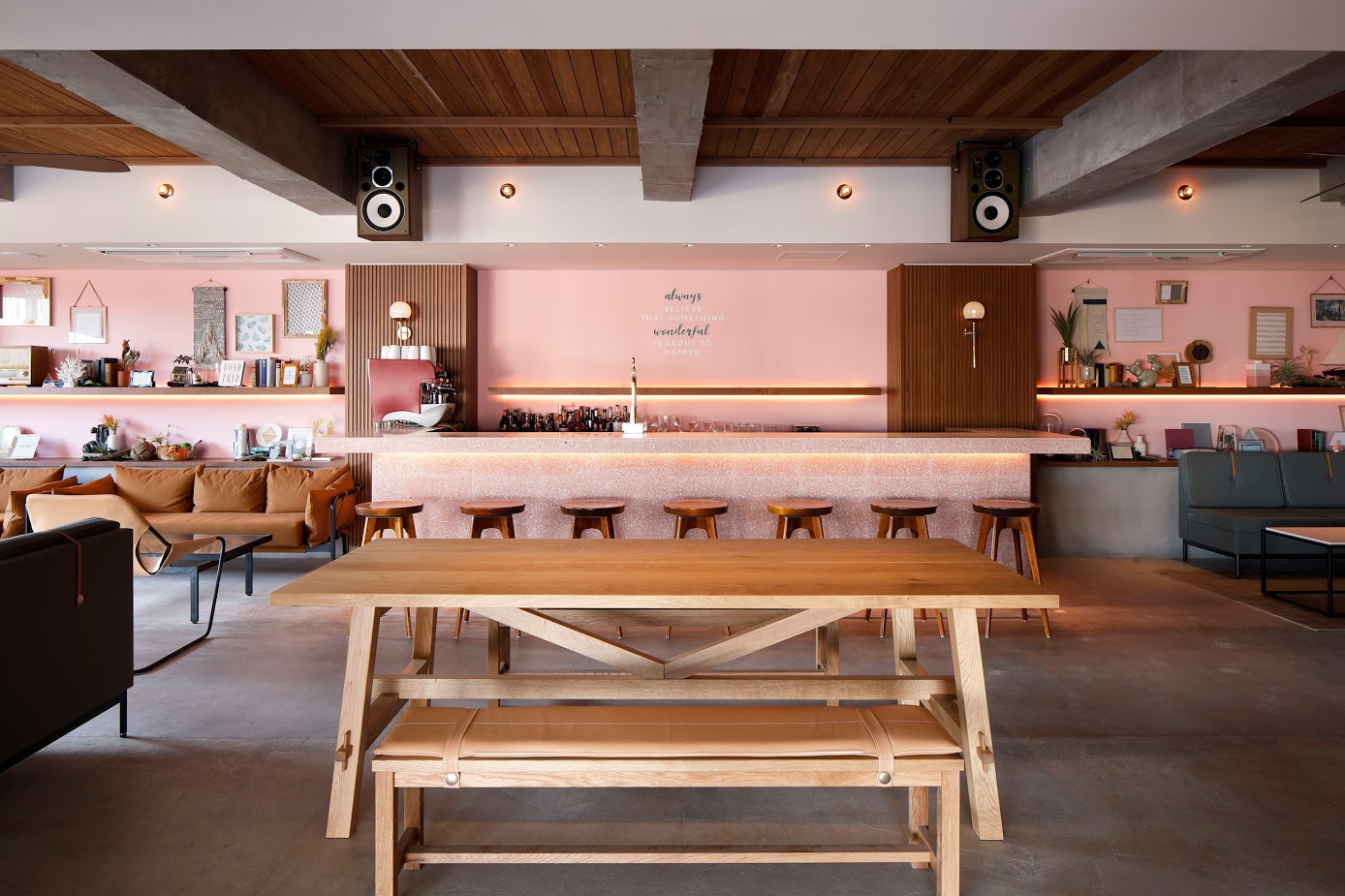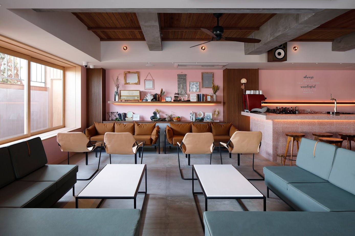 1階のフォトブースにもなるエントランスを抜けると、50人収容のBARラウンジ「THE LOUNGE –COLLECTION- (ザ ラウンジ コレクション)」と2階には60人収容可能なレストラン「DINING (ダイニング)」と3部屋のホテルルーム。最上階となる3階には、バンケットとBARを配置した神戸の景色を一望出来るルーフトップも完備。地下には、自動販売機の姿をしたドアを開けると個室として使用出来る秘密の小部屋が登場します。